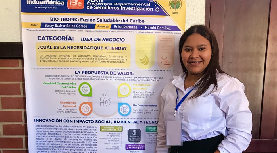 Saray representará a la CORPORACIÓN TECNOLÓGICA INDOAMÉRICA en la categoría de Proyectos Empresariales: Idea de Negocios, de la mano del Centro de Emprendimiento I3E, tras haber alcanzado la fase nacional con una destacada calificación de 100/100 en los regionales.